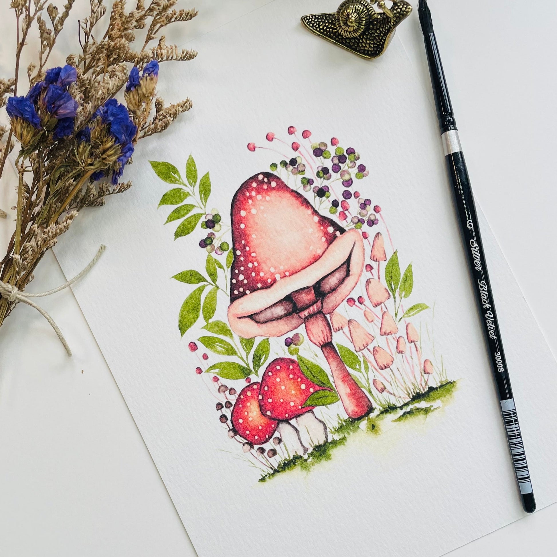 Perfect for nature lovers, fungi fans, or anyone into cottagecore decor, this small art print looks great framed or propped on a shelf.