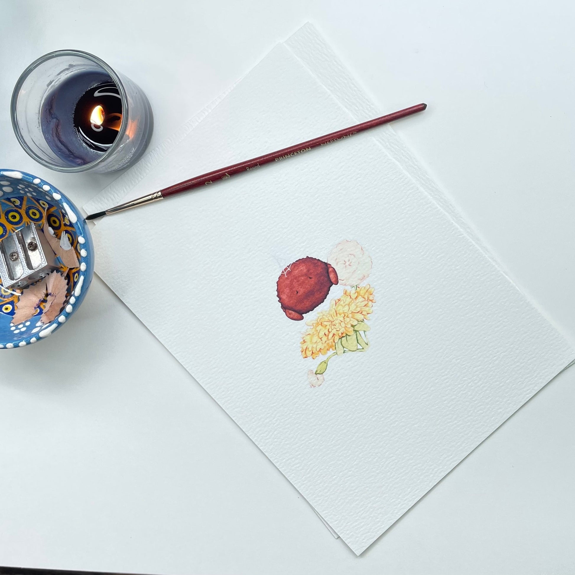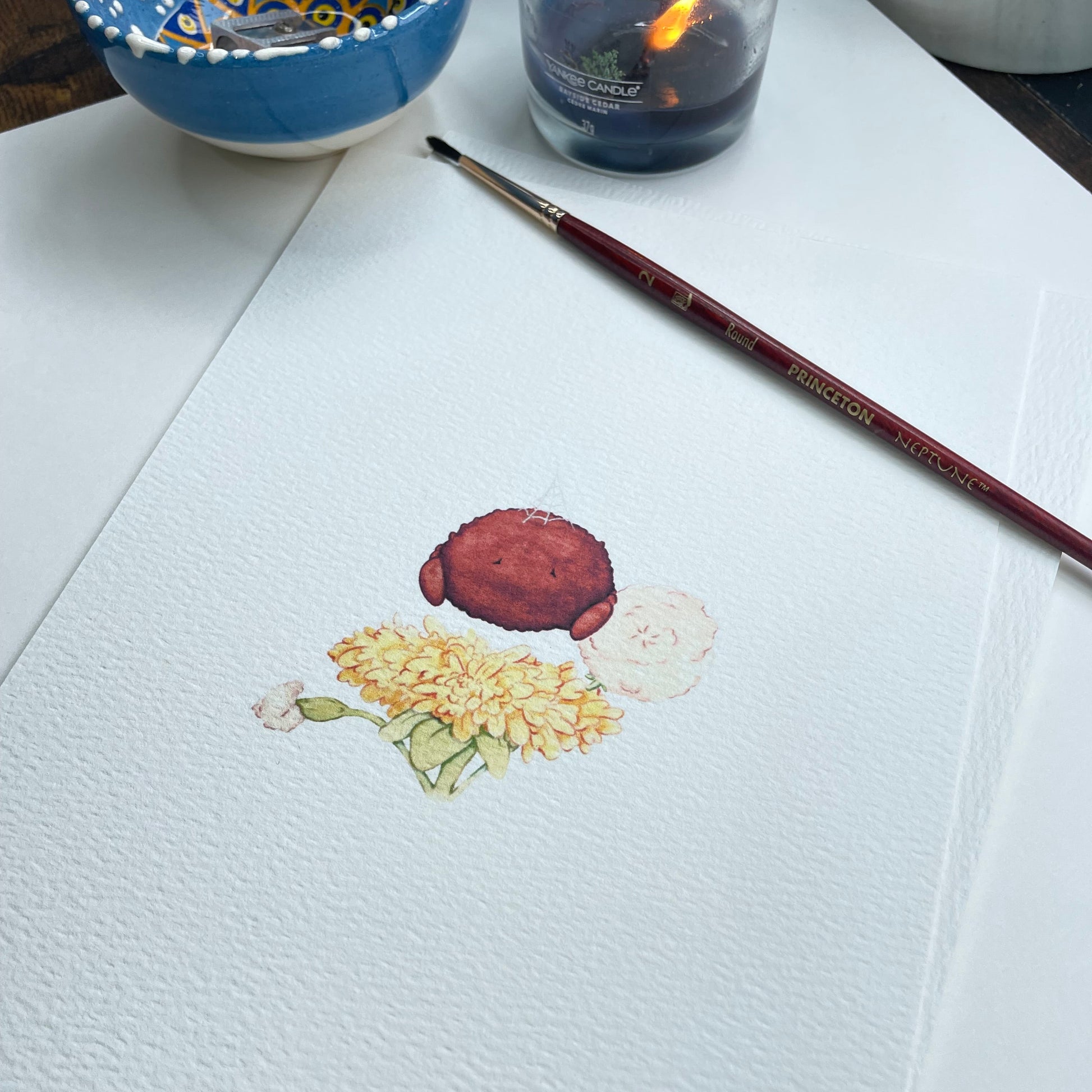 Whimsical A5 art print of a spider and his favourite dandelion. Printed on thick watercolour paper. A fantastic alternative art for nurseries, playrooms or for nature and whimsical art lovers.