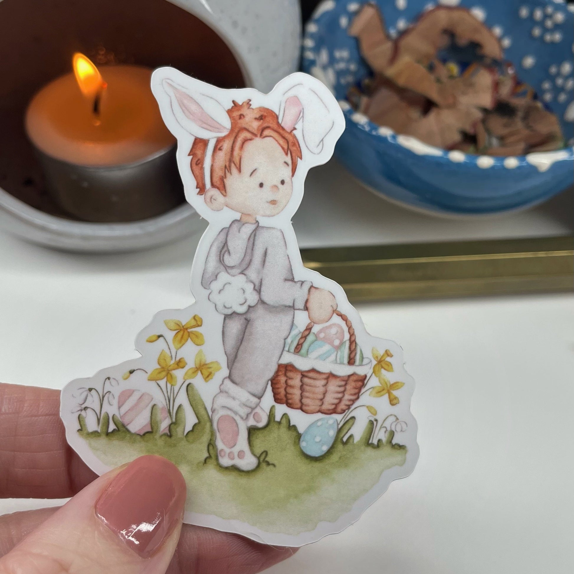 Sweet vinyl sticker created from the original Elle Palmer Art Hops illustration. Vinyl soft touch matte sticker 5.7cm x 7.6cm.
