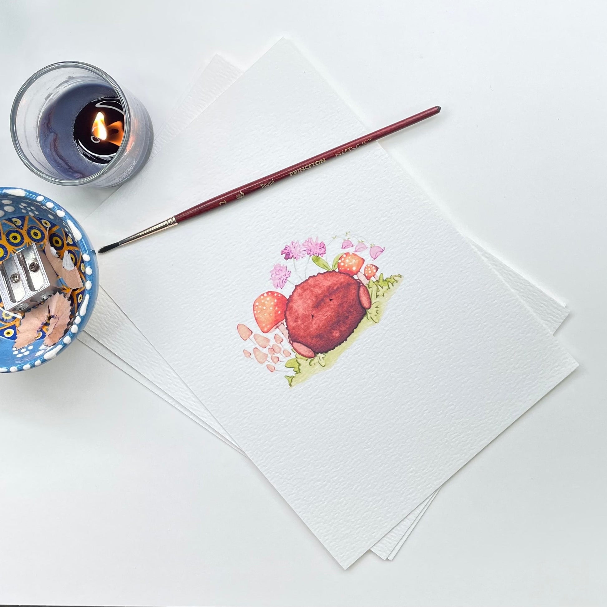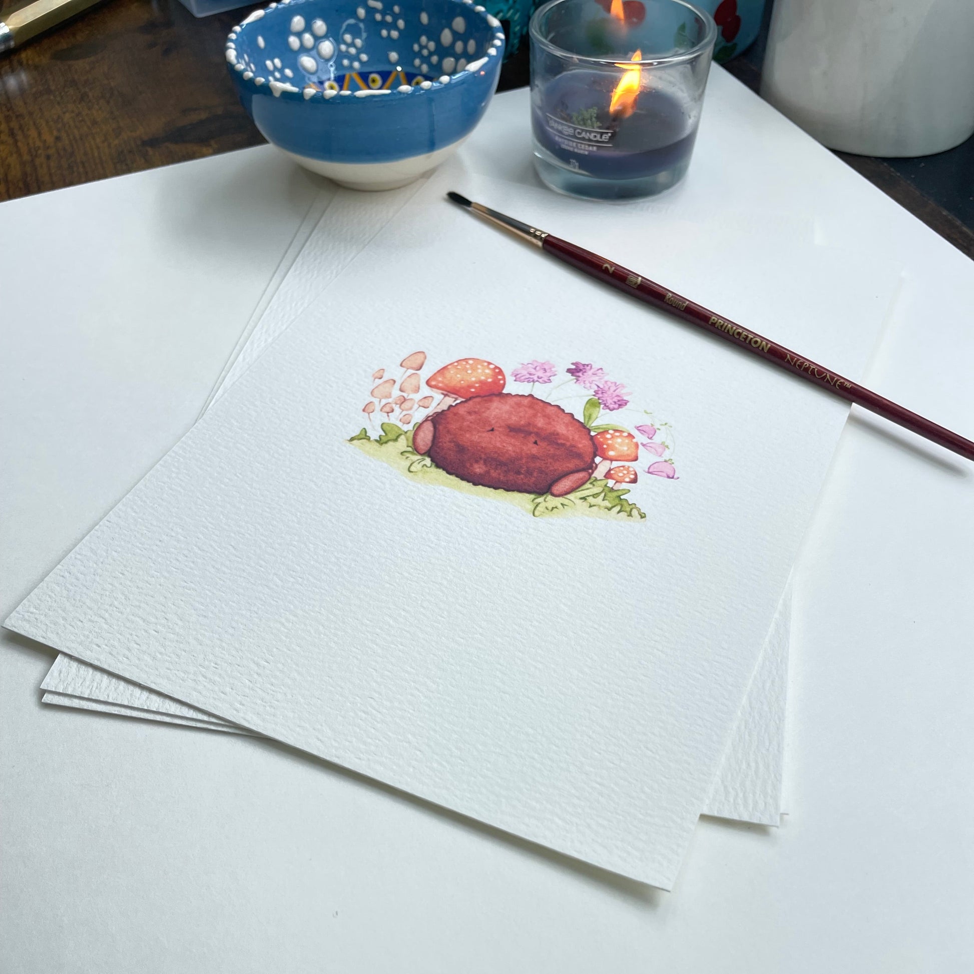 Watercolour illustration print of a spider surrounded by flowers and toadstools. Perfect for insect and nature lovers. A great addition to a collection for Thoume who love whimsical art or are looking for alternative art for a nursery or play room.